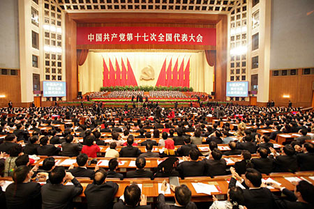10月21日九時(shí),中國(guó)共產(chǎn)黨第十七次全國(guó)代表大會(huì)閉幕會(huì)開(kāi)始在北京人民大會(huì)堂舉行。