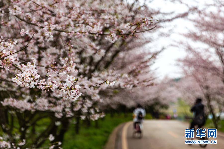 春季里,貴州省貴安新區(qū)紅楓湖畔的櫻花園內(nèi)櫻花綻放,花海如云似雪,吸引游人踏春賞櫻。