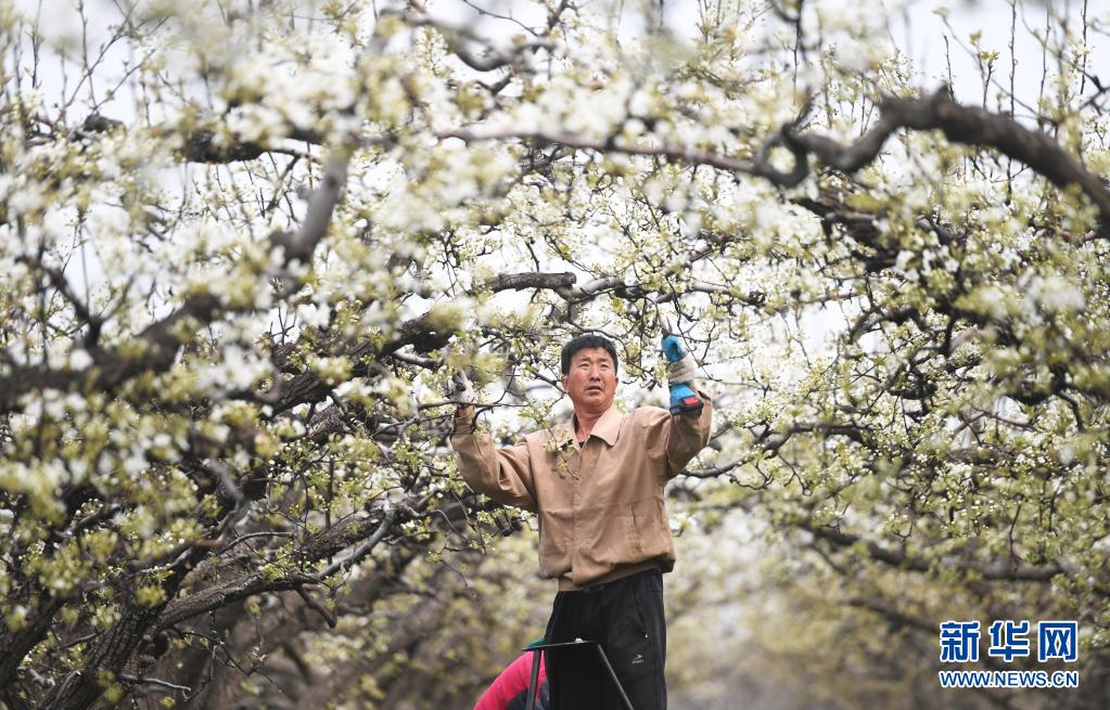 4月5日,河北省雄安新區(qū)雄縣雄州鎮(zhèn)馬蹄灣村果農(nóng)在梨園為梨樹(shù)剪枝。