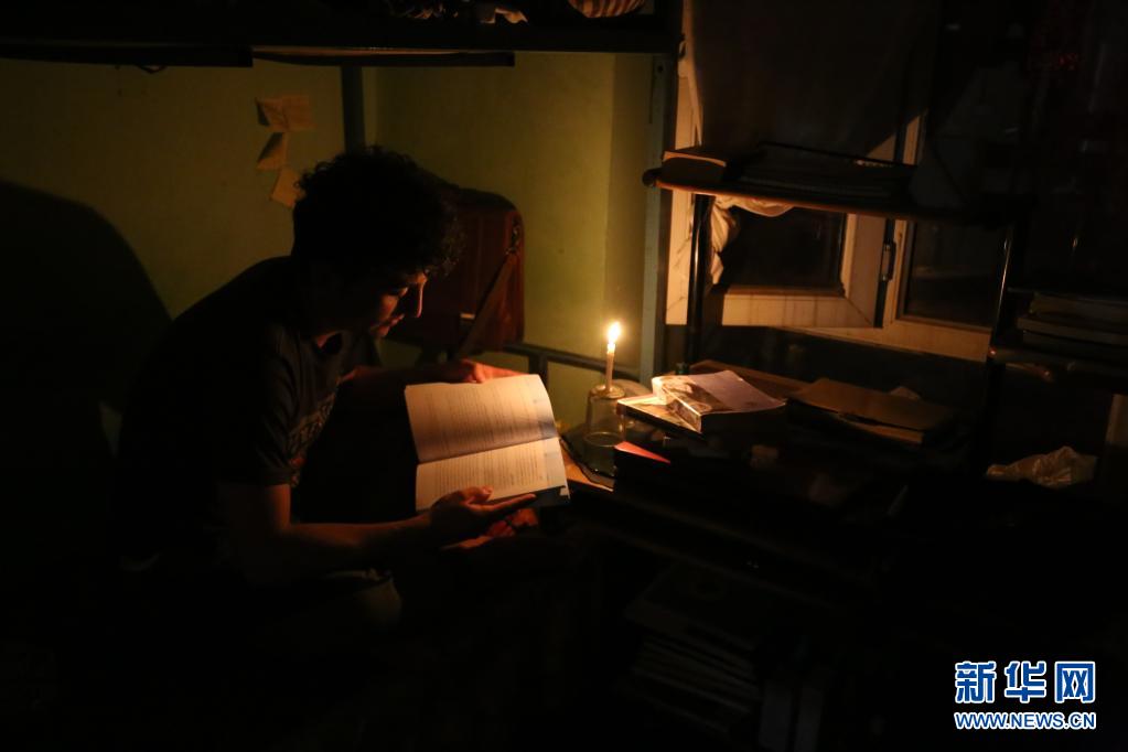 這是2019年9月17日,在阿富汗首都喀布爾,一名學(xué)生在宿舍里點起蠟燭看書。