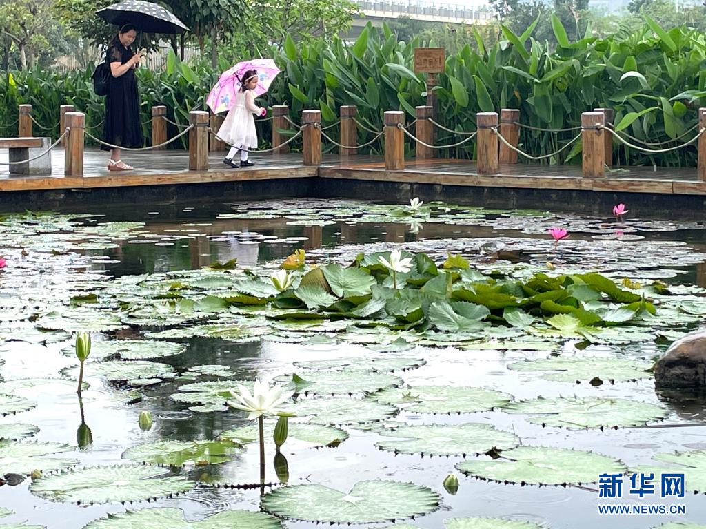 立夏時節(jié),廣西南寧市那考河濕地公園內(nèi)草木吐翠、鮮花斗艷,一派繁茂景象。