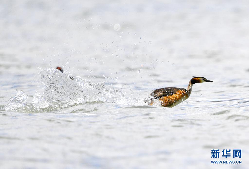 6月14日在拉魯濕地拍攝的鳳頭??。夏日里,鳳頭??和小??在西藏拉薩拉魯濕地國家級自然保護(hù)區(qū)水面上嬉戲。新華社記者 張汝鋒 攝