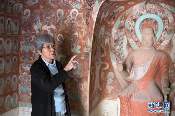 樊錦詩(shī)在敦煌莫高窟(2015年9月29日攝)。新華社發(fā)(孫志軍 攝)