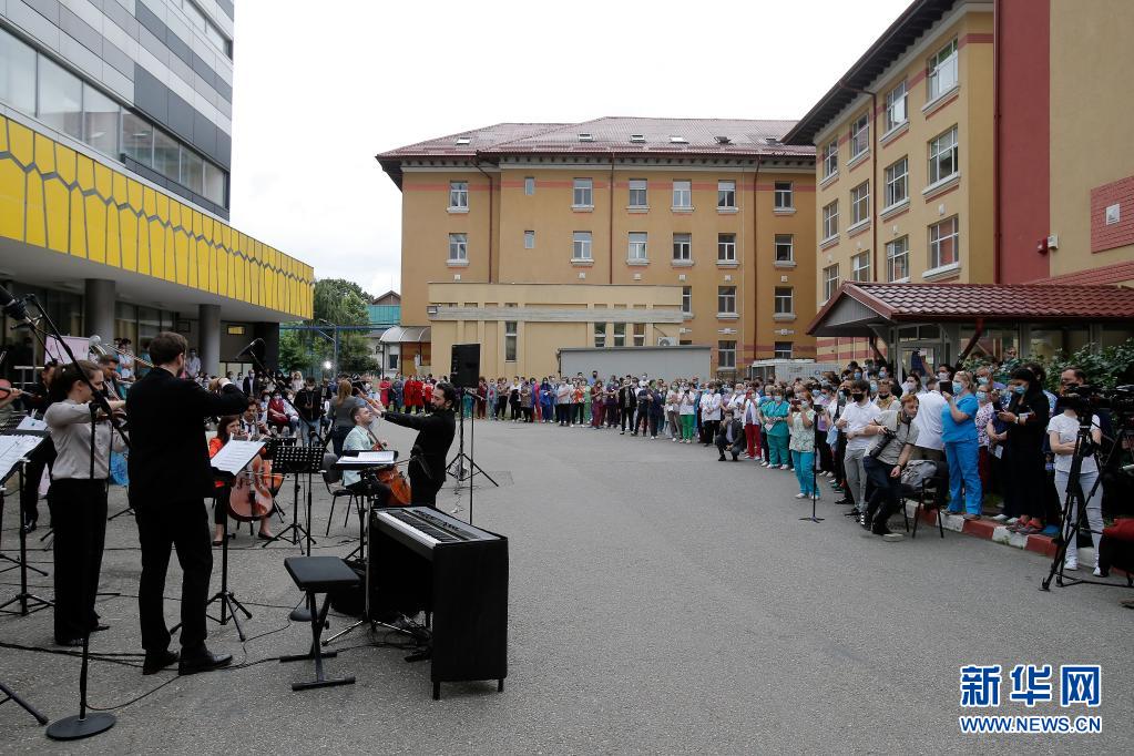 當(dāng)日,羅馬尼亞首都布加勒斯特一個(gè)樂隊(duì)在該國(guó)一家傳染病醫(yī)院——馬太·巴爾什醫(yī)院演出,向抗擊新冠疫情的醫(yī)務(wù)工作者致謝。