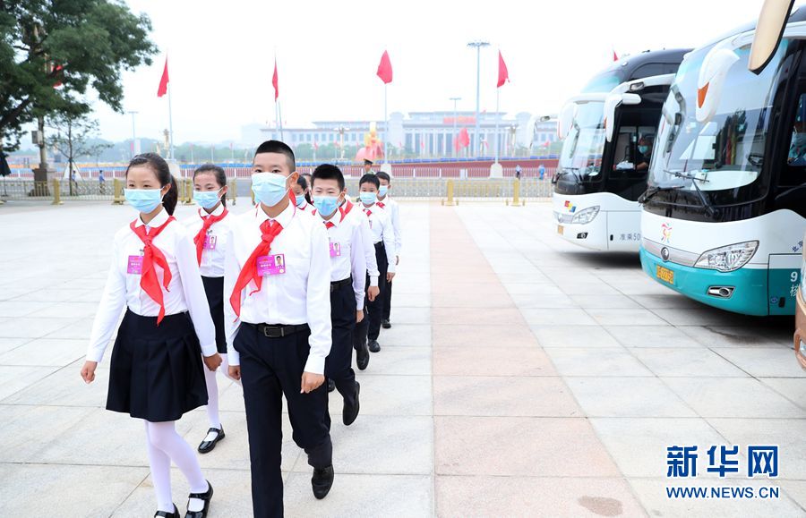 6月29日上午10時,“七一勛章”頒授儀式將在人民大會堂隆重舉行。這是參加頒授儀式的少先隊員。新華網 陳杰 攝