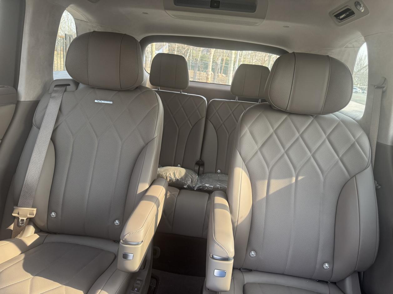 作为一台车长超5米2、轴距3105mm的SUV,M8 EV六座版的空间表现是其核心竞争力。不同于很多七座车“伪三排”的局促,M8的第三排在保证第二排拥有一拳腿部空间的前提下,依然能让180cm的成年人短途舒适乘坐,且座垫高度足够,没有“蹲小板凳”的感觉。
