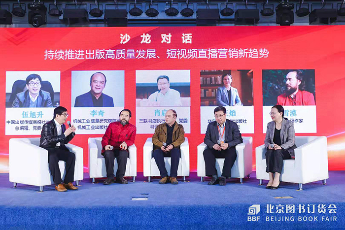 沙龍對(duì)話環(huán)節(jié)中,生活·讀書·新知三聯(lián)書店總編輯肖啟明,機(jī)械工業(yè)信息研究院院長(zhǎng)、機(jī)械工業(yè)出版社社長(zhǎng)李奇,華東師范大學(xué)出版社董事長(zhǎng)、社長(zhǎng)王焰,國家一級(jí)作家雪漠,共同探討短視頻直播營(yíng)銷心得、經(jīng)驗(yàn)及趨勢(shì)。