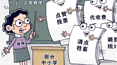 人數(shù)不夠教師來湊。主責(zé)主業(yè)成“副業(yè)”,工作負擔(dān)蹭蹭漲,讓教師苦不堪言。教師的時間都用在“副業(yè)”上了,哪還有時間教書育人?為教師減負,要減掉的正是那些教師不應(yīng)承擔(dān)、與教育教學(xué)無關(guān)的事項,既要“治標(biāo)”,也要“治本”。
