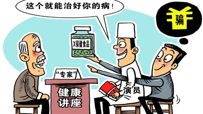 近日有媒體報道,網(wǎng)上有人打著中醫(yī)的幌子賣課圈錢。那些自稱“神醫(yī)傳人”“國醫(yī)名師”的講師,根本沒有培訓(xùn)資質(zhì)。養(yǎng)生保健“坑老”騙局其實并不新鮮??域_的一大“訣竅”是,渲染和利用老年人的健康焦慮。針對??永先说摹梆B(yǎng)生騙局”,必須持續(xù)加大打擊力度,進一步加強保健品監(jiān)管。