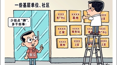開展達標(biāo)評比、創(chuàng)建示范活動,本是以標(biāo)兵引領(lǐng)推動工作落實的有效之舉。但是一些部門卻將發(fā)牌視為“工作下沉”的象征,認為“掛牌即落實”,甚至將掛牌數(shù)量與考核排名掛鉤,大搞“繁瑣哲學(xué)”,動輒開發(fā)出上百項指標(biāo),以此下移壓力。部分社會組織甚至以“達標(biāo)創(chuàng)建”之名創(chuàng)收牟利,造成負面影響。