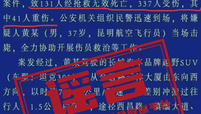 近日,有網(wǎng)民散布虛假的“警情通報”,造謠傳播云南昆明交通事故“致131人死亡,337人受傷”等不實信息,公安機關(guān)核查后,依法對造謠者進行了刑事拘留?!八{底白字”的“警情通報”是公安機關(guān)權(quán)威發(fā)布的重要渠道。不法分子竟敢冒用官方標(biāo)識,將“2死9傷”惡意篡改成“131人死亡、337人受傷”,并編造聳人聽聞的細節(jié),真是膽大包天!