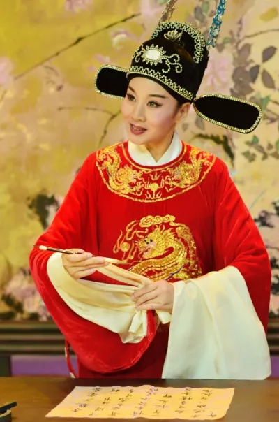 提到黃梅戲,經(jīng)典名劇《女駙馬》是不可不提的重要作品。這部劇是黃梅戲最為著名的代表之一,塑造劇中“馮素珍”這個(gè)角色,需要表演者具備極強(qiáng)的專業(yè)功底與豐富的表演經(jīng)驗(yàn)。尤其是女扮男裝中狀元的這一場戲,演員要時(shí)刻注意心境的轉(zhuǎn)換,旦行與生行的靈活切換,采用戲曲程式化的動(dòng)作把人物內(nèi)心戲進(jìn)行外化表現(xiàn),讓觀眾跟隨演員的情緒而動(dòng)。