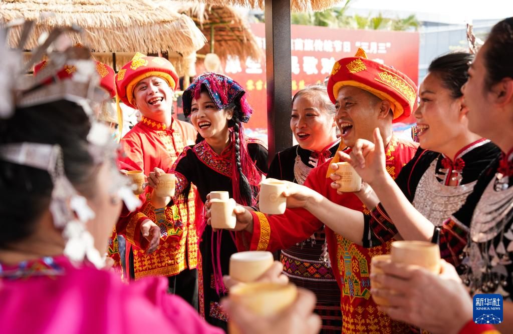 近日,在海南省乐东黎族自治县,当地群众通过参加民歌对唱比赛、传统服饰展演等丰富多彩的民俗活动,欢庆传统节日“三月三”。