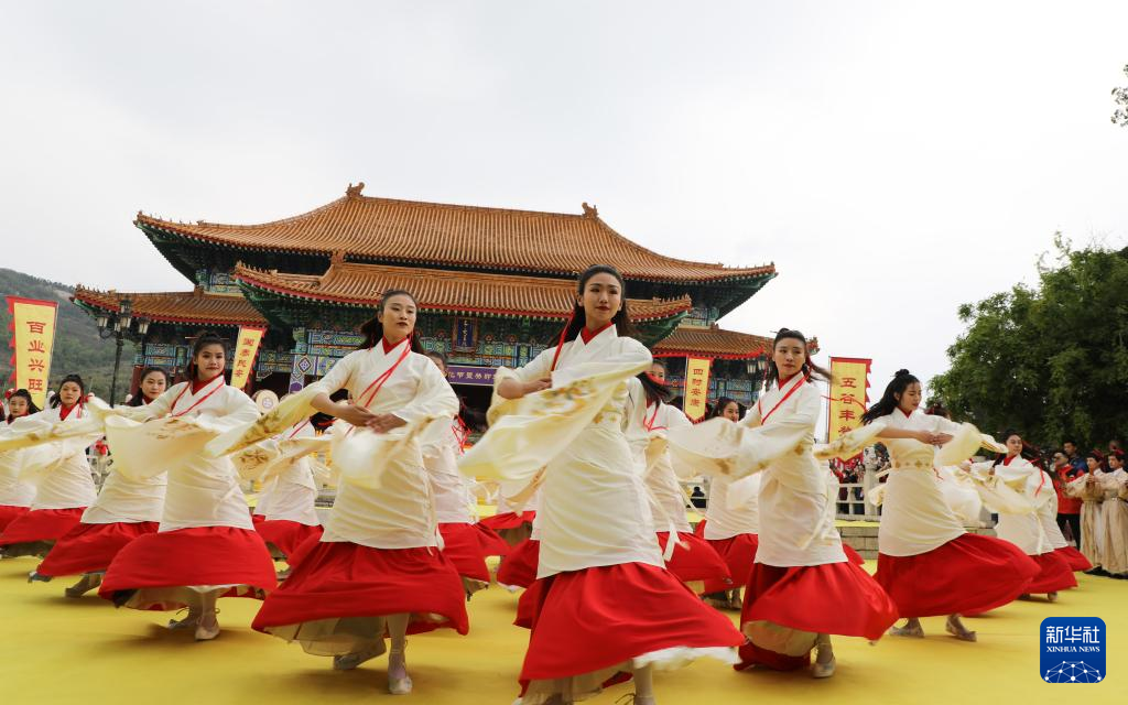 4月25日,在山东沂山风景区,演员在祀山大典上表演“乐舞”。
