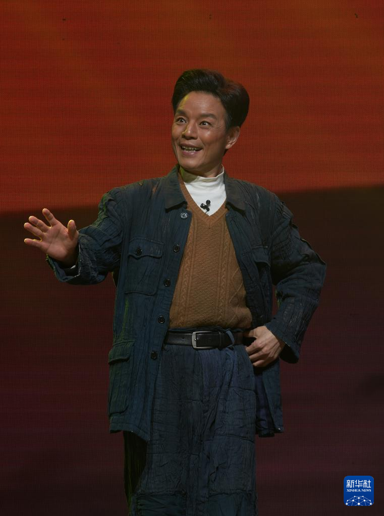 4月26日,河南省豫剧院三团的演员在开幕式演出现场表演豫剧《焦裕禄》选段。