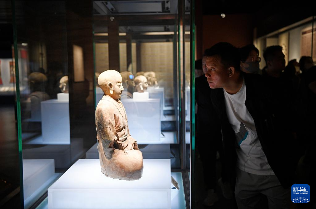 5月18日,游客在西夏博物馆欣赏展出的西夏文物。