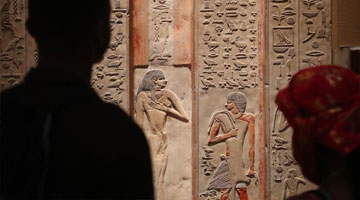 施晓明(左)和施锦芳在整理提线木偶(4月19日摄)。