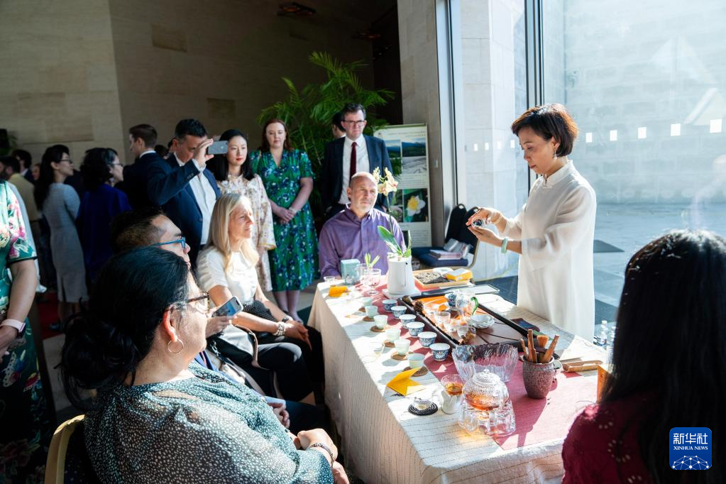 5月21日,在美国华盛顿中国驻美国大使馆,茶艺师为来宾表演茶艺。