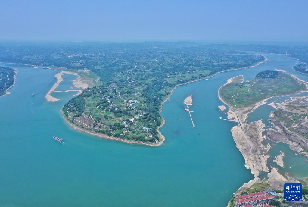 这是6月27日拍摄的神臂城全貌(无人机照片)。远处大桥为5月27日通车的神臂城长江大桥。