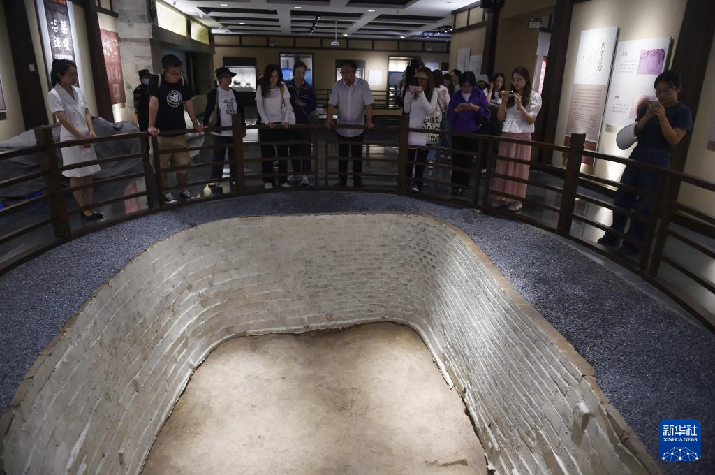 8月8日,参加集中采访的媒体记者在位于河南省郑州市的古荥汉代冶铁遗址博物馆参观采访。