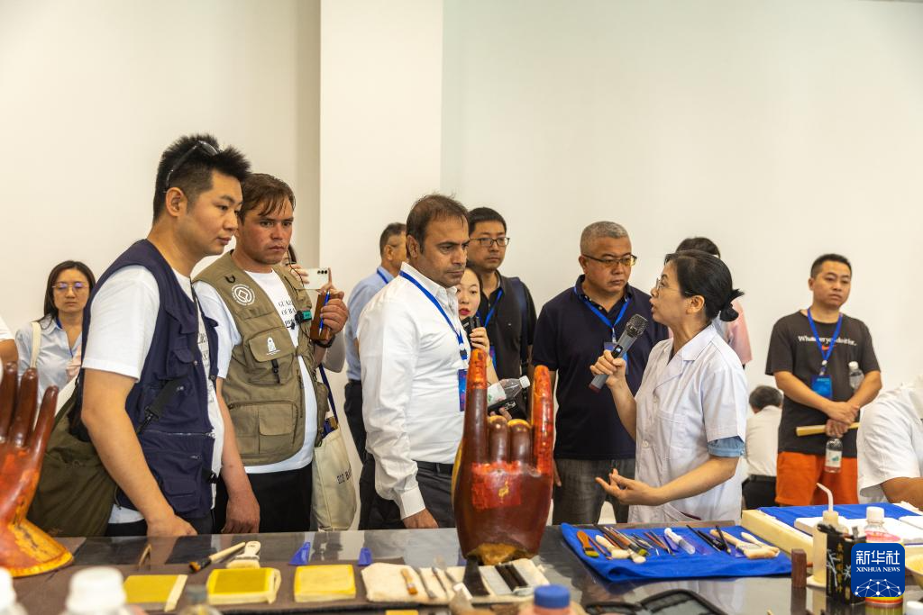 8月19日,嘉宾在大足石刻文物医院内参观。
