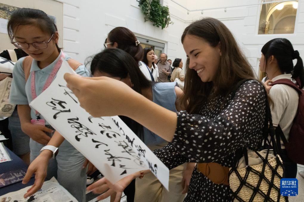 8月29日,嘉宾在匈牙利布达佩斯体验中国书法。