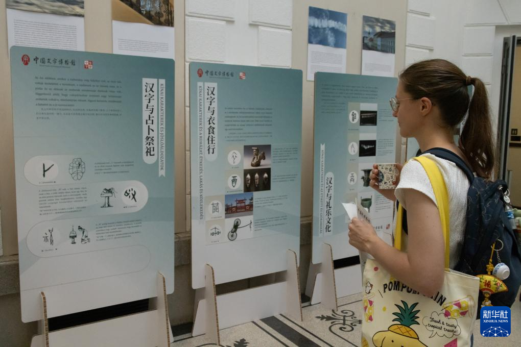 8月29日,嘉宾在匈牙利布达佩斯参观“汉字与中华文明”展。