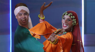 在梧州市长洲区长洲镇泗洲村,陈明仲(左)在教小学生唱下俚歌(8月24日摄)。