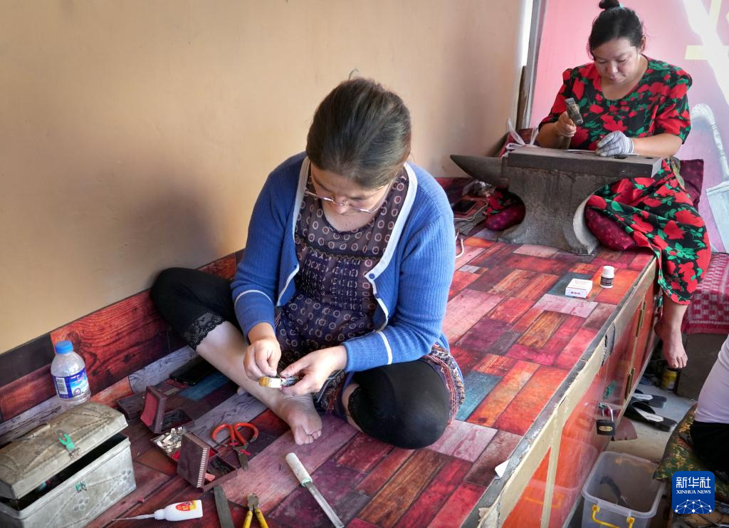 9月5日,手工艺人在英吉沙县芒辛镇喀拉巴什兰干村制作小刀。