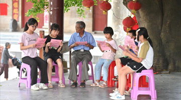 9月8日,在宝鸡西秦刺绣文化产业园,千阳绣娘在直播间推广刺绣手工艺品。陕西千阳县是国家级非物质文化遗产“西秦刺绣”的重要发祥地和传承地。近年来,千阳县将西秦刺绣作为助农增收的重要产业,推动非遗项目产业化发展,助力乡村振兴。