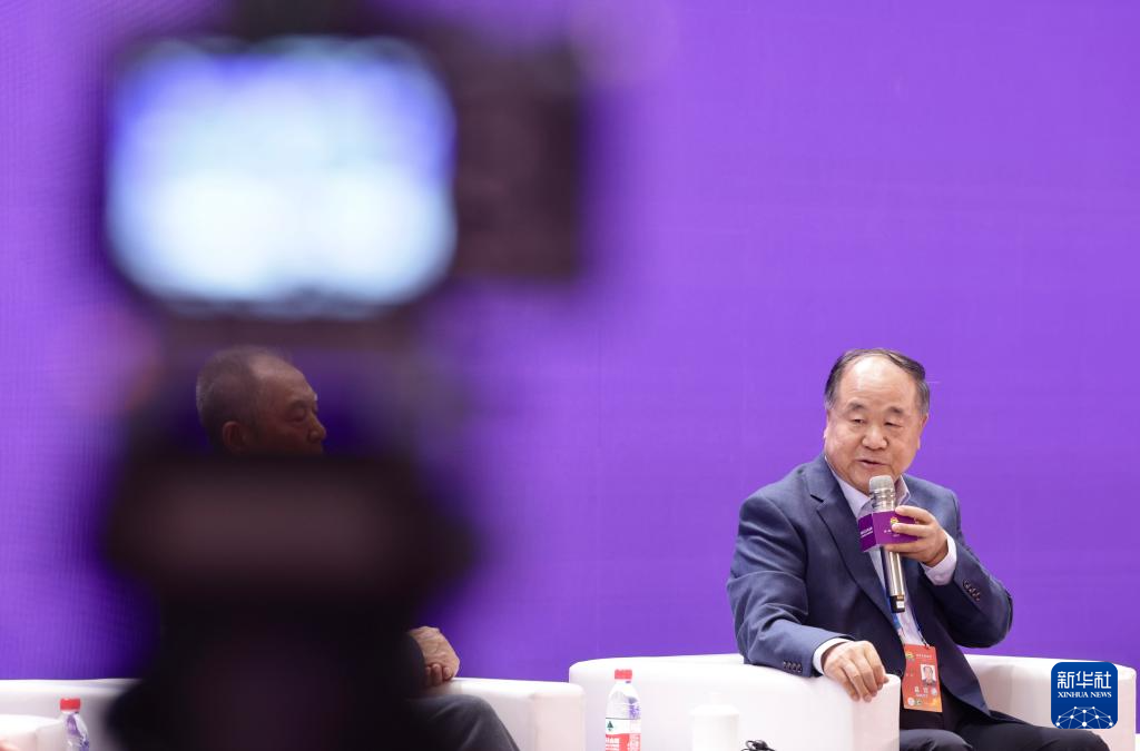9月15日,作家莫言(右二)在“以文化人:文艺价值与社会生活”平行论坛的“中国文学与世界对话”圆桌对话现场发言。