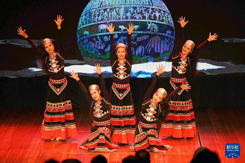 9月19日,在科威特首都省,来自中国云南省临沧歌舞团的演员表演舞蹈。
