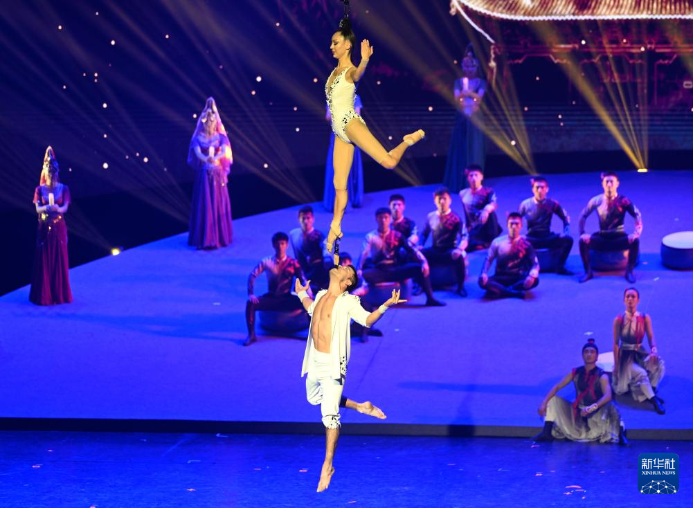 10月20日,演员在第十九届中国吴桥国际杂技艺术节开幕式上表演。