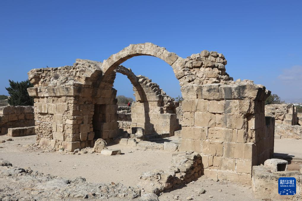 这是11月8日在塞浦路斯帕福斯考古公园内拍摄的一处遗址。