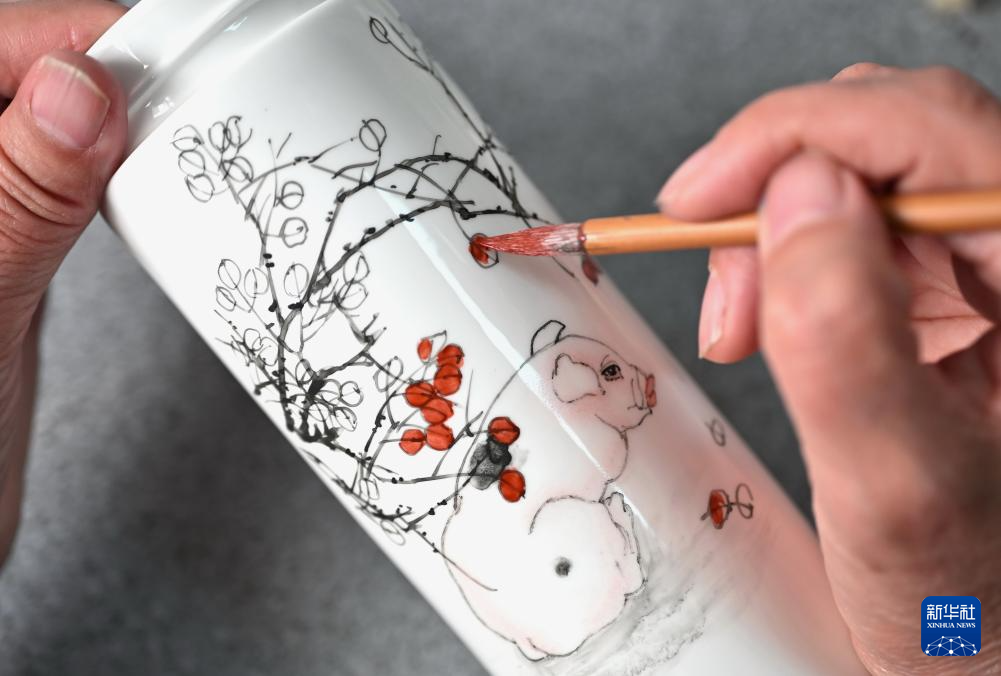 11月21日,一位工艺美术师在唐山市开平区陶瓷文创产业园创作陶瓷绘画作品。