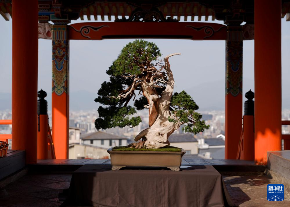 新华社日本京都11月25日电(记者姜俏梅)初冬时节,日本京都古刹清水寺枫叶似火、游人如织。为纪念中日和平友好条约缔结45周年,中日盆栽水石展24日在京都清水寺开幕。尽显自然山水之美的盆栽作品与寺庙古建筑融为一体,吸引了大批游客驻足观赏。