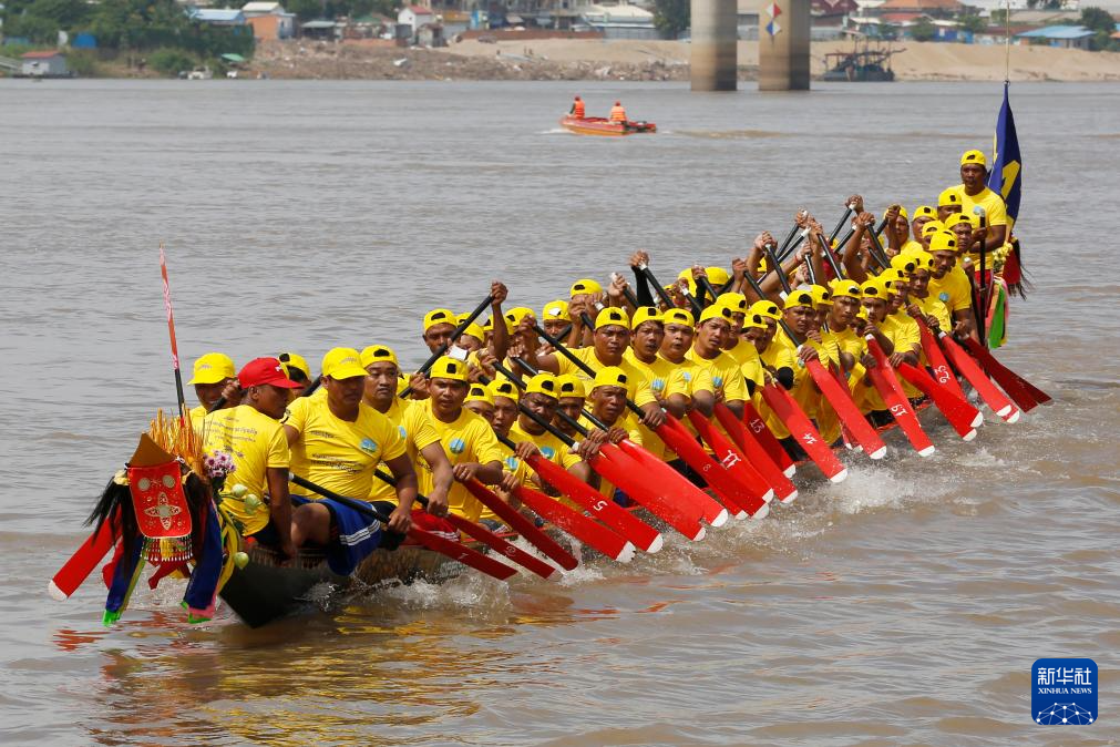 11月26日,在柬埔寨首都金边,人们参加赛龙舟活动。