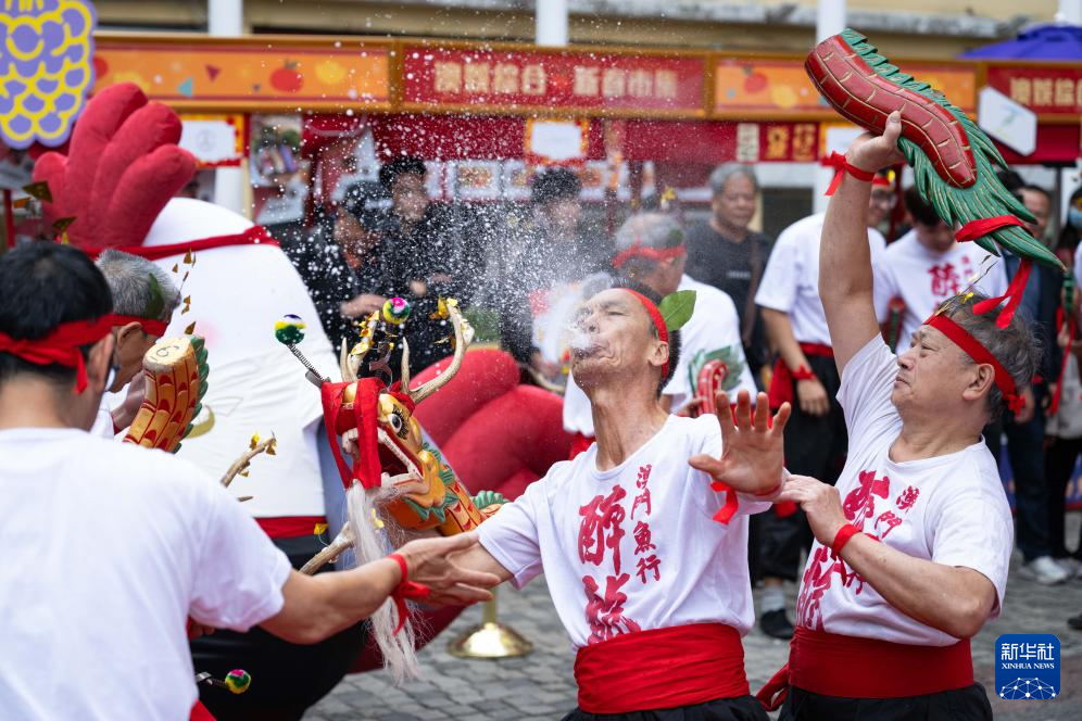 当日,澳门鲜鱼行总会在澳门中区举行“龙腾醉耀舞濠江”舞醉龙表演,展现非物质文化遗产的魅力,热闹贺新春。