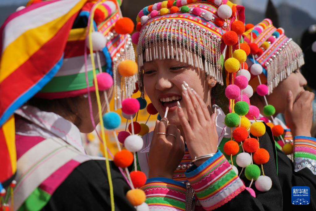 2月20日,在盈江县苏典乡阔时节活动上,一名女孩在化妆。