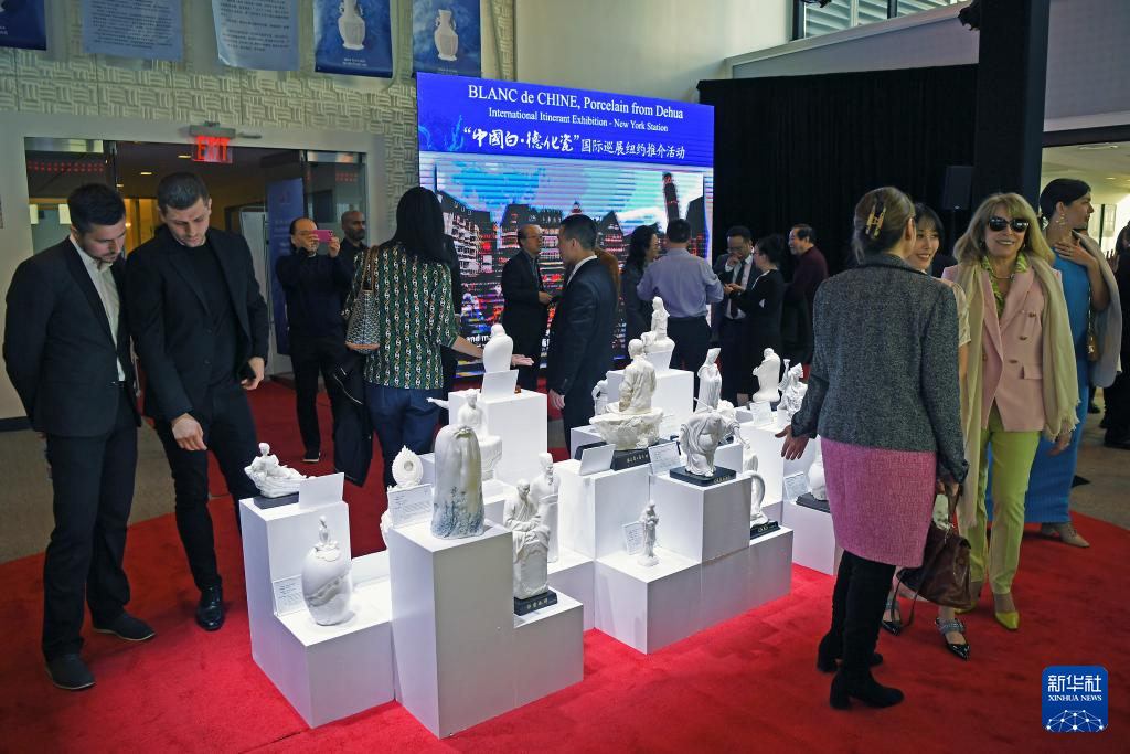 2024年“中国白·德化瓷”国际巡展纽约推介活动14日在美国纽约时报广场拉开序幕。此次巡展共展出105件德化白瓷作品,巡展将持续至18日。