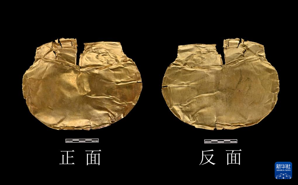 河南郑州商都书院街墓地M2墓葬出土的“金覆面”。