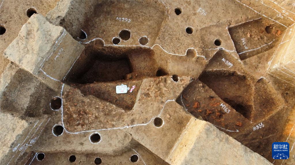 河南郑州商都书院街墓地发掘现场(2023年5月13日摄,无人机照片)。