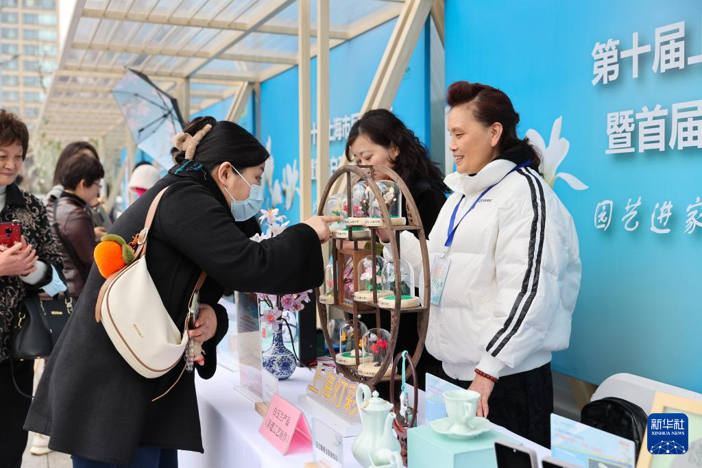 3月26日,市民在白玉兰文创市集了解白玉兰系列文创产品。