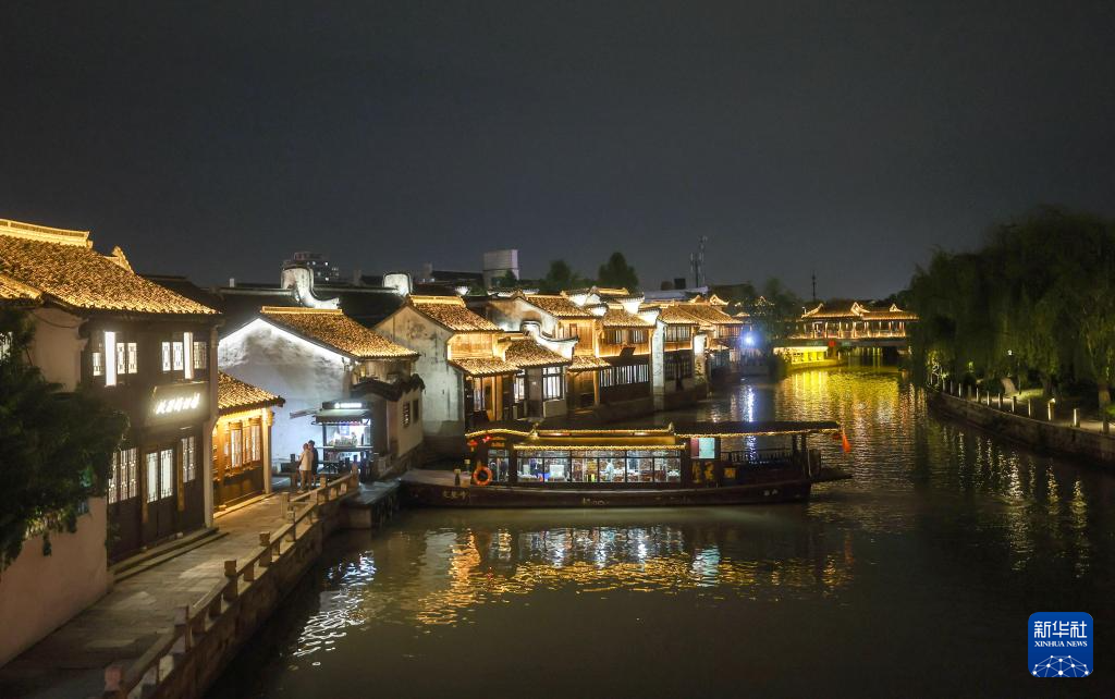4月26日,游船行驶在流经嘉兴市月河历史街区的京杭大运河上。