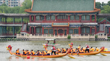 2017年6月10日,张氏皇苑龙表演团队在沈阳故宫表演。