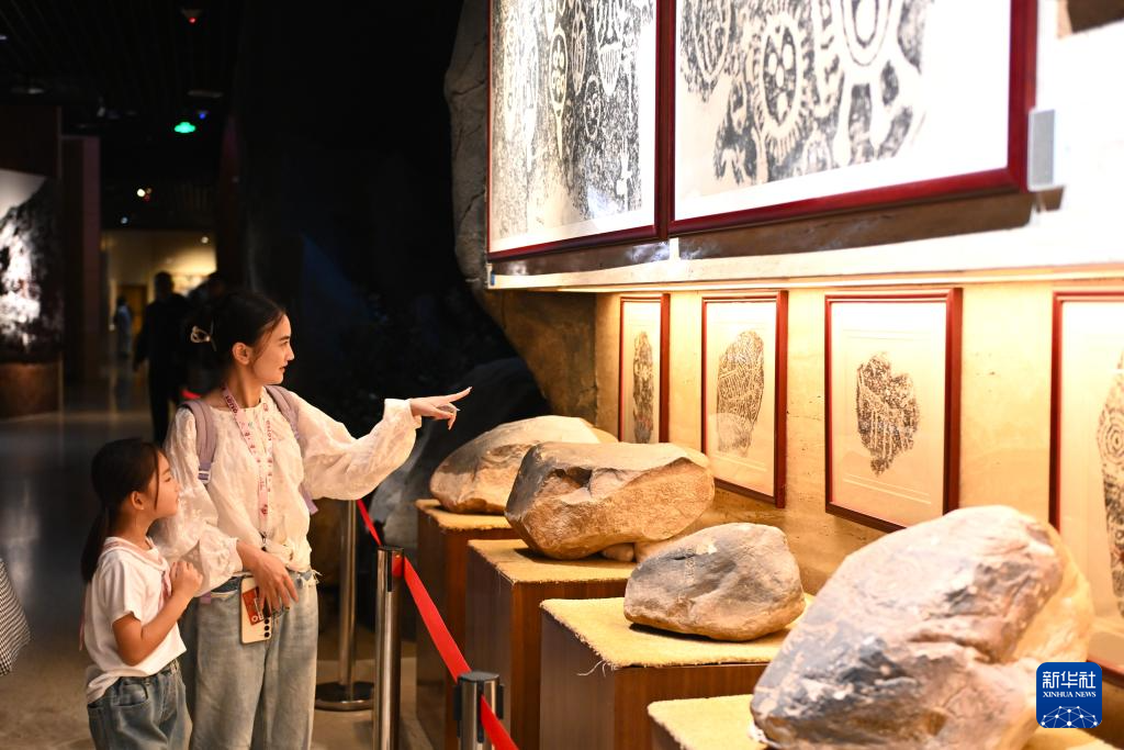 9月1日,游客在宁夏博物馆观赏贺兰山岩画。
