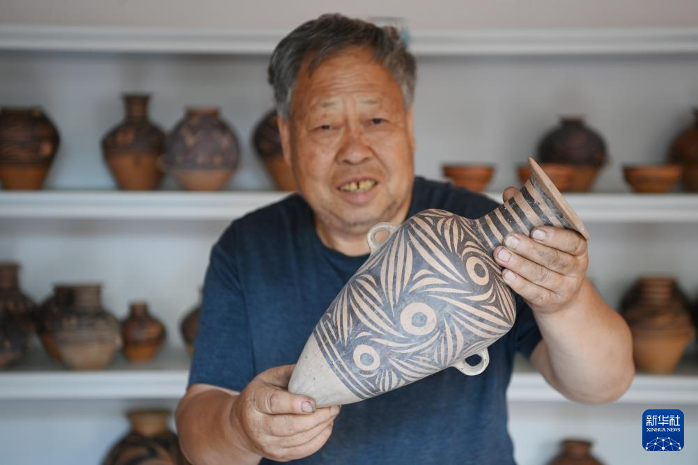 “即便用最柔顺的毛笔,色彩最佳的矿物颜料,也难以企及古人的精细和柔美。”阎建林说,这更坚定了他继续传承彩陶技艺的决心。在传承上精益求精,阎建林的名气也越来越大,成为当地陶器制作技艺非物质文化遗产传承人。