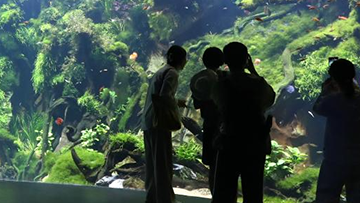 9月9日,参观者在上海温室花园云上森林展区参观。