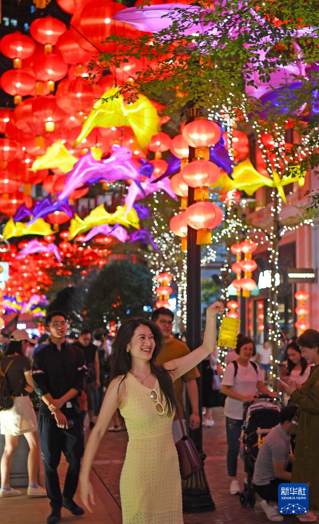 9月17日,人们在香港利东街赏灯,欢庆中秋佳节。新华社记者 陈铎 摄