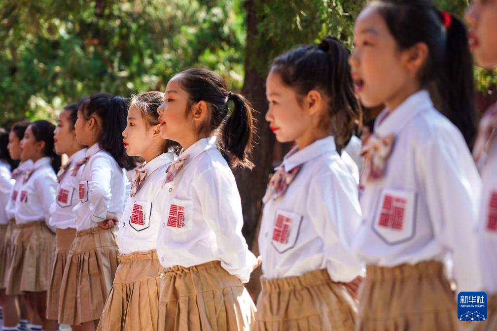 9月28日,在2024甲辰年公祭孔子大典上,小学生在曲阜孔庙诵读儒学经典。